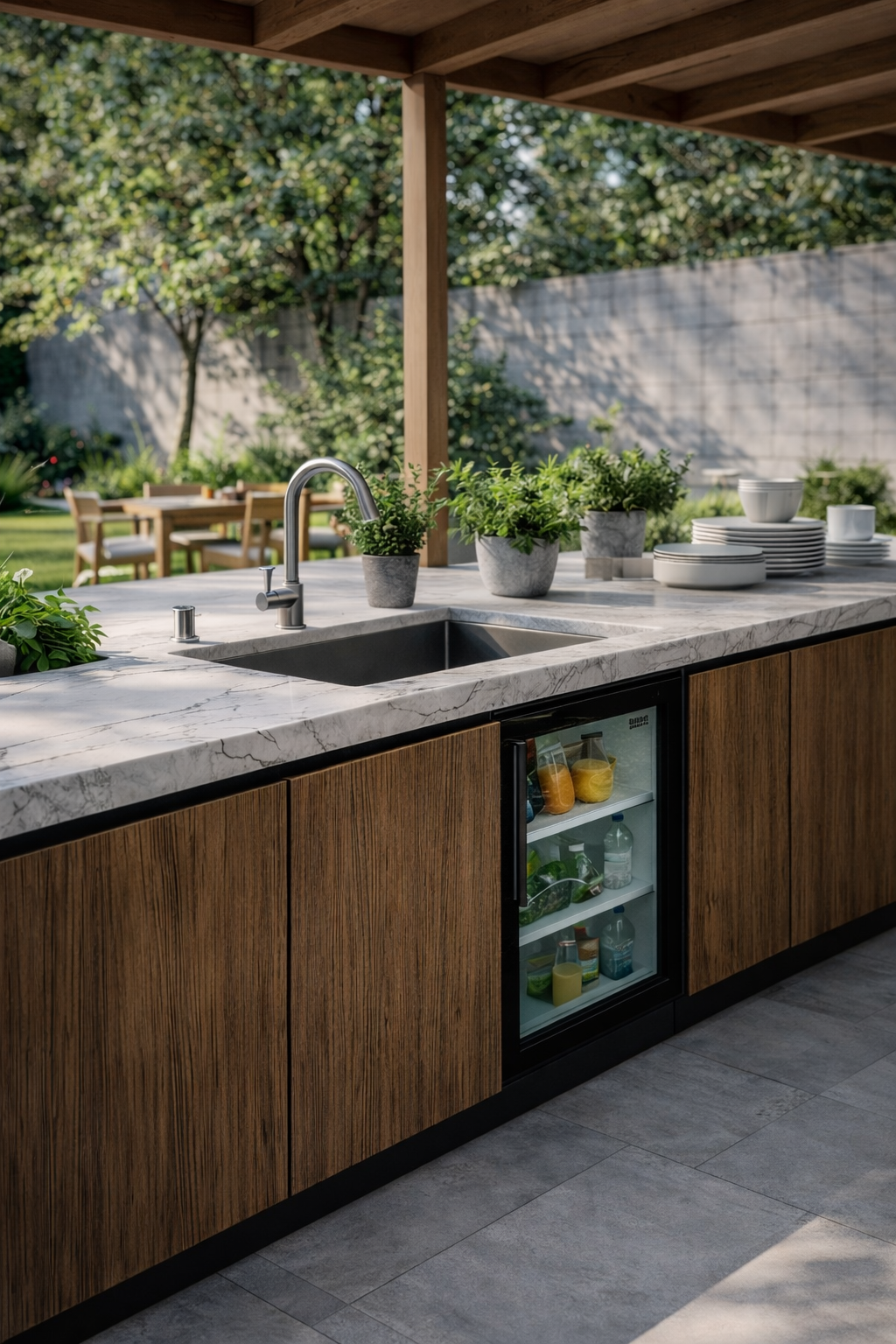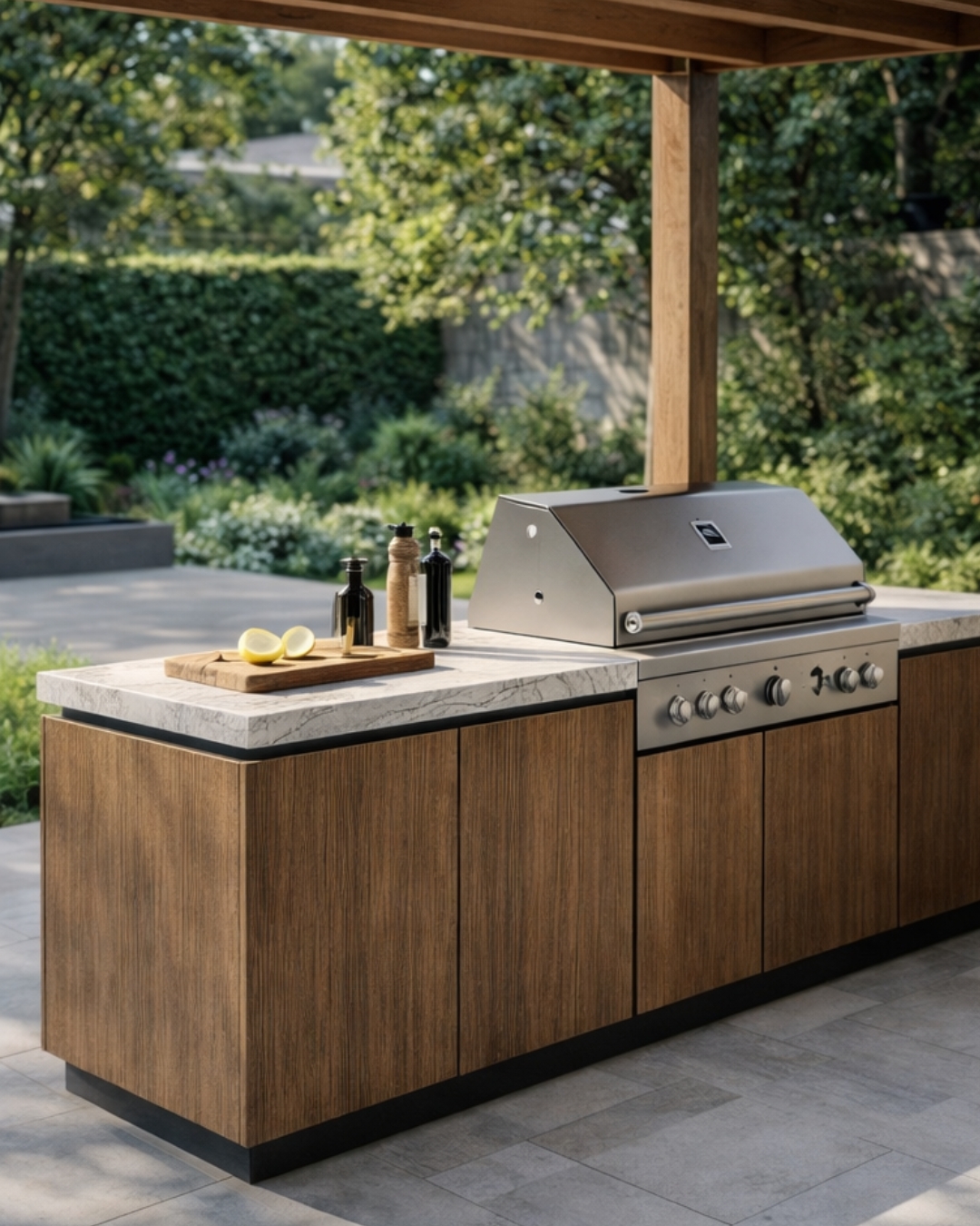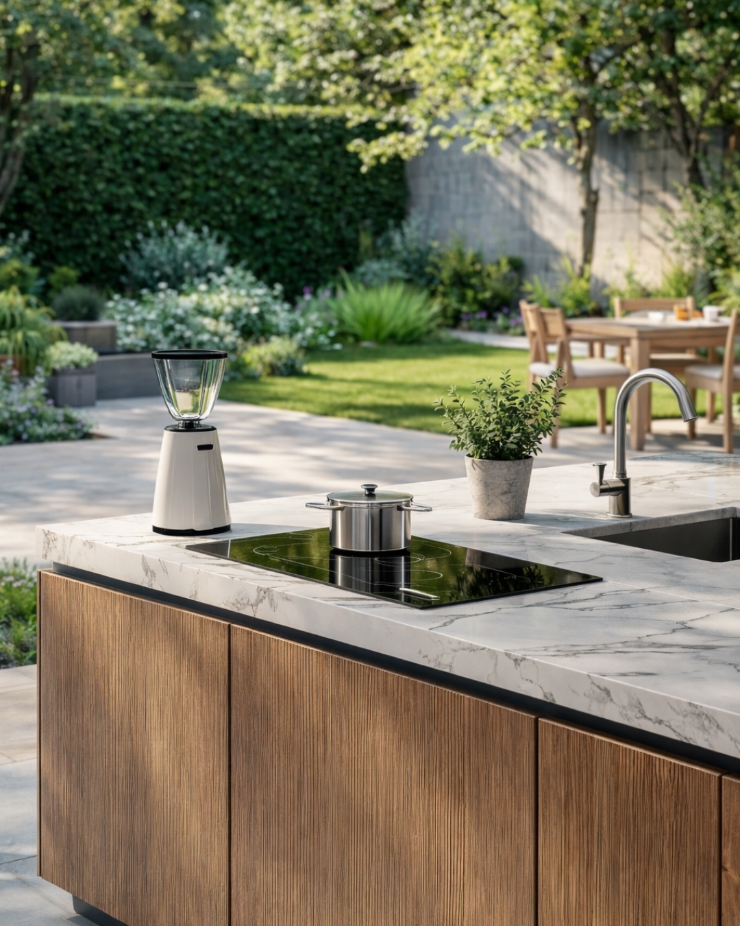 Nous imaginons des cuisines extérieures pensées comme de véritables espaces de vie, où chaque détail compte et où chaque moment se partage.